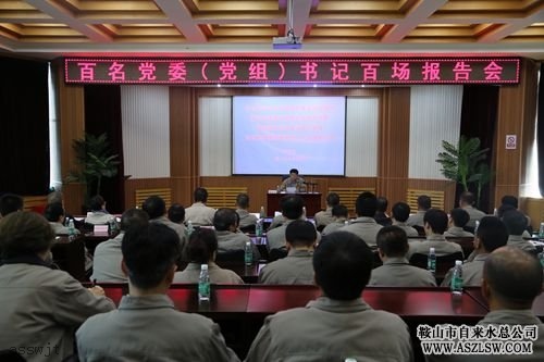 10月13日,按照市委統(tǒng)一部署,鞍山市水務(wù)集團(tuán)舉行“學(xué)習(xí)習(xí)近平總書(shū)記系列重要講話精神 落實(shí)全面振興鋼都的全鏈條部署 推動(dòng)城市水務(wù)建設(shè)穩(wěn)步發(fā)展 以?xún)?yōu)異成績(jī)迎接黨的十九大勝利召開(kāi)”百名黨委書(shū)記百場(chǎng)報(bào)告會(huì)。水務(wù)集團(tuán)籌備組組長(zhǎng)裴忠文作宣講報(bào)告。