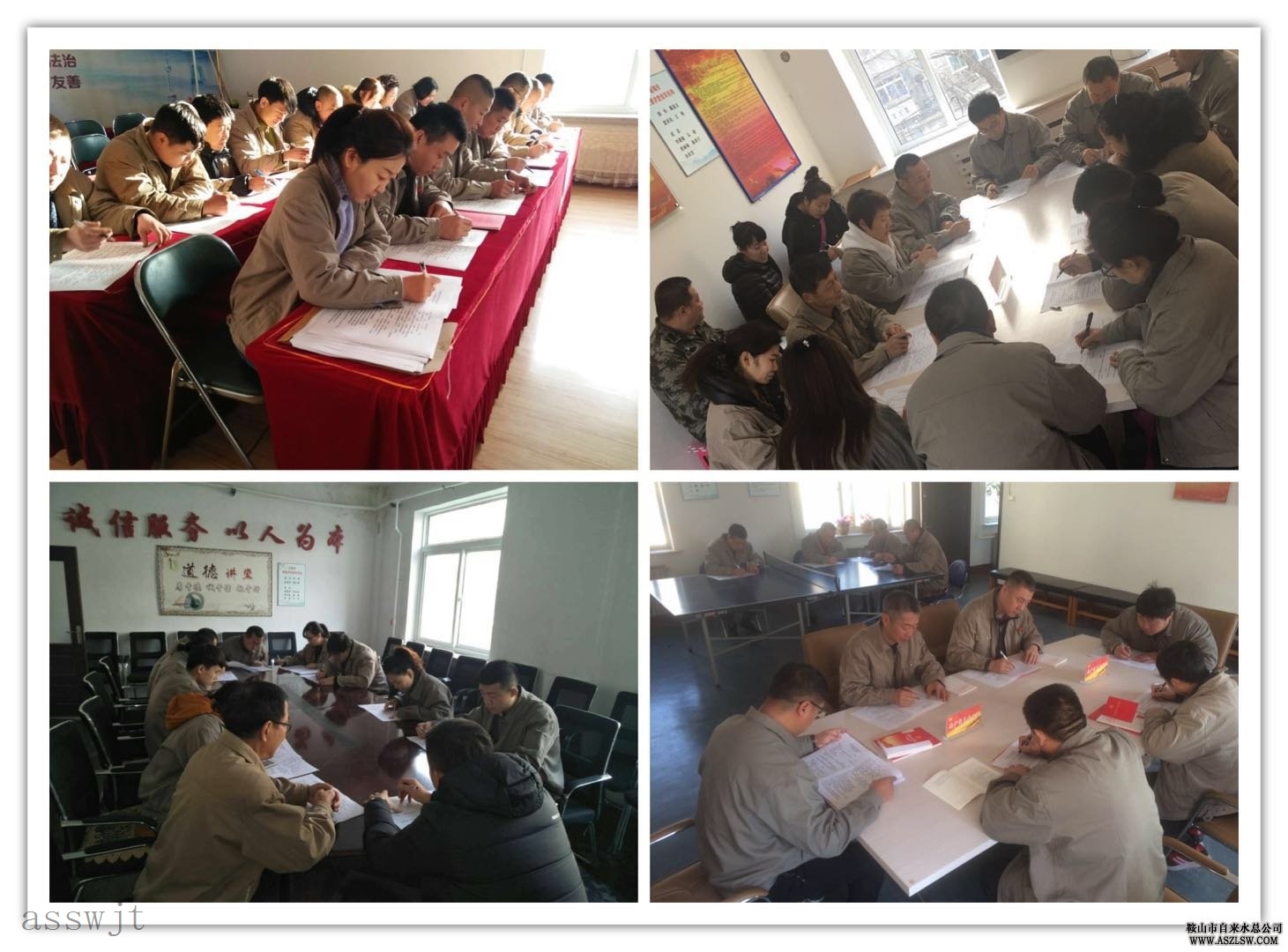 根據(jù)市委和市國(guó)資委黨委要求,從11月30日—12月8日,水務(wù)集團(tuán)所屬各黨總支、支部分別組織全體黨員干部和職工2200余人進(jìn)行了學(xué)習(xí)宣傳貫徹黨的十九大精神知識(shí)考試。考試采用閉卷的形式??紙?chǎng)上,職工們神情專注,根據(jù)平時(shí)掌握的十九大知識(shí)認(rèn)真答題,并結(jié)合自己學(xué)習(xí)和工作實(shí)際闡述了學(xué)習(xí)黨的十九大精神體會(huì)。