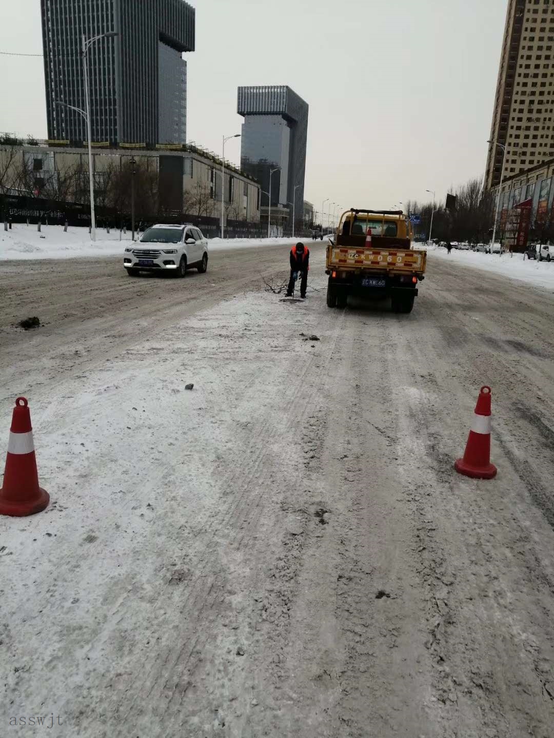暴雪期間,排水鐵東、鐵西管修分公司冬季服務(wù)人員頂風(fēng)冒雪,分別對鐵東大石街莘英路南、鐵西四達大道居然之家北破損的排水設(shè)施進行及時修補,確保行人、行車安全。