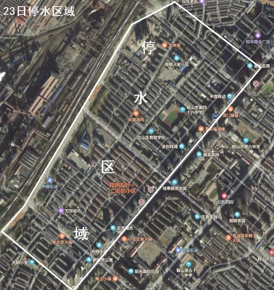 因供水管網(wǎng)施工,定于4月23日8時(shí)至17時(shí),立山建國(guó)大道以東、新立街以南、勝利北路以西、永安街以北區(qū)域停水。