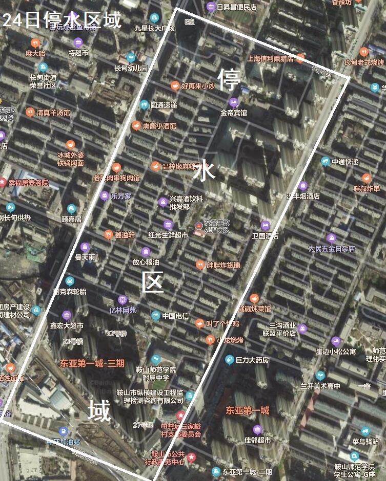 因供水管網(wǎng)施工,定于4月24日8時(shí)至17時(shí),鐵東中華南路以東、長(zhǎng)大街以南、園林大道以西、四方臺(tái)路以北區(qū)域停水。