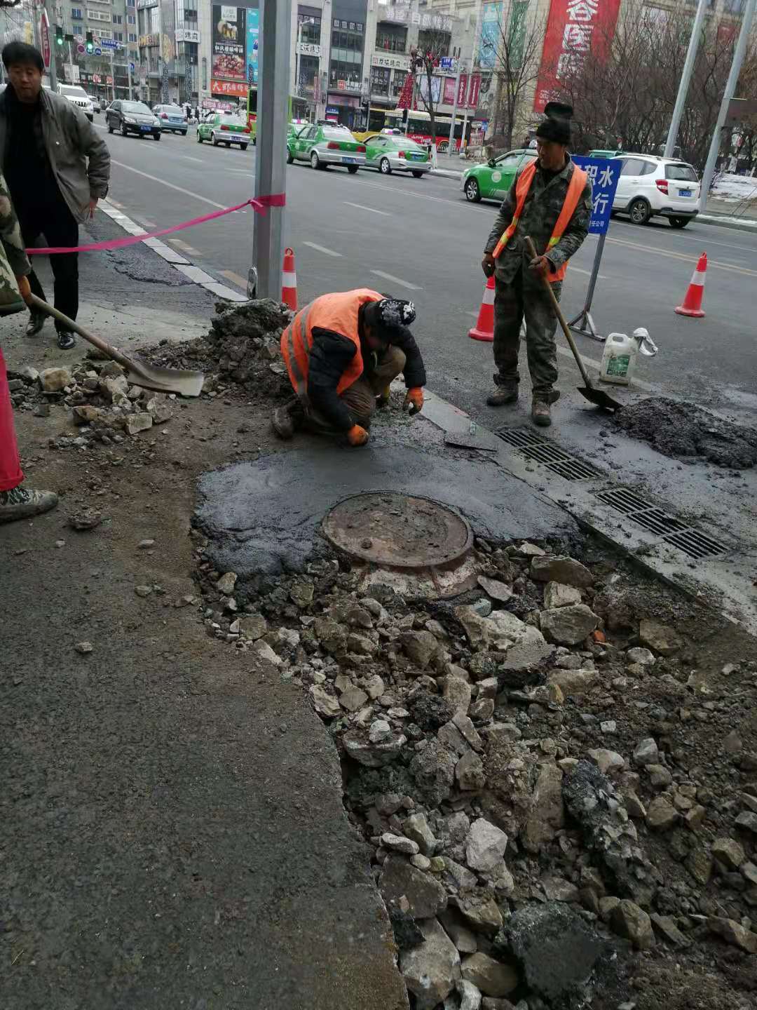 1月5日,排水鐵西管修分公司得知此情況后,立即組織搶修人員趕赴現(xiàn)場。經(jīng)過實地勘察,系污水管線坍塌堵塞,導致的路面結(jié)冰,影響居民生活。不僅如此,周邊商戶擔心管線挖開后如不能及時恢復會影響做生意。雖然不是排水設(shè)施,但是為解決居民生活污水排放問題,1月6日在城市發(fā)展管理中心、郭明義學雷鋒團隊以及鐵西區(qū)綜合執(zhí)法局等單位的共同努力下,水務(wù)集團排水鐵西管修分公司承擔了這次幫助老百姓排憂解難的搶險任務(wù)。僅用半天時間,新建D300管線16米、新設(shè)檢查井一座,同時為了促進營商環(huán)境,搶修隊員拿出了本領(lǐng),對刨開的路面進行了抹泥恢復,得到周圍百姓和商戶高度認可。管線暢通了,百姓的心也亮堂了!
