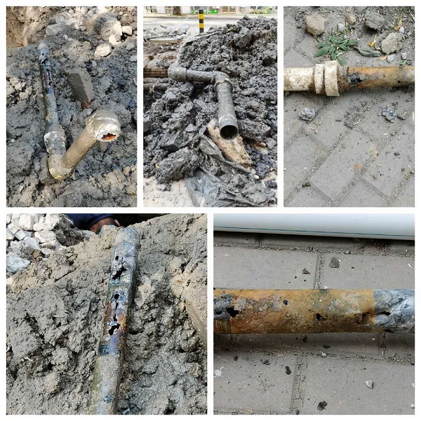湖南所按照千山公司降差工作總體部署要求,在保障供水同時(shí),時(shí)刻監(jiān)控地區(qū)產(chǎn)銷差。通過(guò)DMA區(qū)域監(jiān)控表數(shù)據(jù)比對(duì),發(fā)現(xiàn)二十六中區(qū)域夜流較高。所里立即對(duì)該區(qū)域進(jìn)行查找漏水,6月1日晚通過(guò)夜查、閉門、揭下水井,最終鎖定湖南街15棟地下管線漏水。次日千山公司搶修隊(duì)及時(shí)搶修。6月2日、3日千山公司搶修隊(duì)先后對(duì)湖南街15棟地下DN50進(jìn)戶線進(jìn)行兩次維修,降低無(wú)效水量日均500m3。由于進(jìn)戶打口管線為DN50熟鐵管,因下水井堵塞導(dǎo)致地下供水管線被污水浸泡,腐蝕嚴(yán)重。極易造成水質(zhì)污染,為防止今后管線再次漏水造成水質(zhì)污染,湖南所將事態(tài)嚴(yán)重性及時(shí)上報(bào)分公司及集團(tuán)公司,申請(qǐng)對(duì)此樓管線進(jìn)行更換改造。