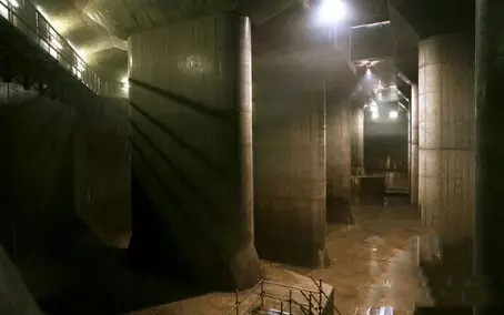 除了地震以外,對日本影響最大的恐怕就是臺風(fēng)和夾裹而來的大雨。而東京地區(qū)排水系統(tǒng)于1992年開工,2006年竣工,堪稱世界上最先進(jìn)的下水道排水系統(tǒng)。堪稱“地下宮殿”。東京的地下排水標(biāo)準(zhǔn)是“5至10年一遇”(1年1遇是每小時(shí)可排36毫米雨量),最大的下水道直徑12米。東京的雨水有兩種渠道可以疏通:靠近河渠地域的雨水一般會通過各種建筑的排水管,以及路邊的排水口直接流入雨水蓄積排放管道,最終通過大支流排入大海;其余地域的雨水,會隨著每棟建筑的排水系統(tǒng)進(jìn)入公共排雨管,再隨下水道系統(tǒng)的凈水排放管道流入公共水域。下水道的每一個(gè)檢查井都有一個(gè)8位數(shù)編號,便于維修人員迅速定位。東京圈外圍排水系統(tǒng)由一連串混凝土立坑組成,每個(gè)混凝土立坑有65米高(約22層樓)、32米寬,在地下50米深處,由6.3公里長的隧道串接而成,除此之外,還有一座巨型調(diào)壓水槽:25.4米高(約八層樓)、177米長、78米寬,內(nèi)有59支混凝土支柱,總貯水量為670,000立方米,以14000匹馬力的渦輪機(jī)達(dá)到最大排水量每秒200立方米。為了保證排水道的暢通,東京下水道局從污水排放階段就開始介入。他們規(guī)定,一些不溶于水的洗手間垃圾不允許直接排到下水道,而要先通過垃圾分類系統(tǒng)進(jìn)行處理。并且東京設(shè)有降雨信息系統(tǒng)來預(yù)測和統(tǒng)計(jì)各種降雨數(shù)據(jù),并進(jìn)行各地的排水調(diào)度。利用統(tǒng)計(jì)結(jié)果,可以在一些容易浸水的地區(qū)采取特殊的處理措施。