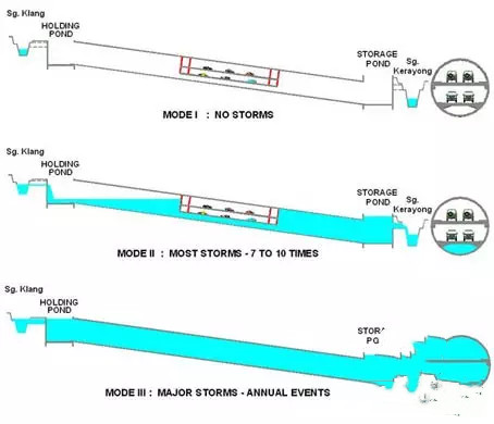 馬來西亞也有值得借鑒的地方,在地處熱帶的吉隆坡,暴雨肆虐的天氣經(jīng)常出現(xiàn),導(dǎo)致河流泛濫。當(dāng)?shù)卣?007年籌資4億多美元修造的暴雨管理和道路隧道系統(tǒng)(SMART Tunnel),很大程度上為吉隆坡的居民緩解了一下雨就道路積水,造成堵車的局面。這個(gè)道路系統(tǒng)的儲水容量為300萬立萬米,項(xiàng)目設(shè)計(jì)按照百年一遇的降雨強(qiáng)度而建造,其中的防暴雨排水道綿延達(dá)9.7公里,內(nèi)部直徑13.2米。工程之大,運(yùn)作之高效,令人嘆為觀止。美國的探索頻道甚至為這個(gè)工程專門做了一集紀(jì)錄片,名字就叫《“聰明”的隧道》。