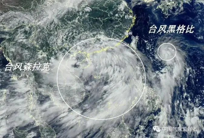 這兩個臺風(fēng)雖然同年同月同日生,但性格很不一樣。3號臺風(fēng)“森拉克”是大塊頭、慢性子,結(jié)構(gòu)松散4號臺風(fēng)“黑格比”是小個子、急性子、結(jié)構(gòu)緊湊兩個臺風(fēng)的路徑也大不相同:3號臺風(fēng)影響華南,4號臺風(fēng)影響華東。