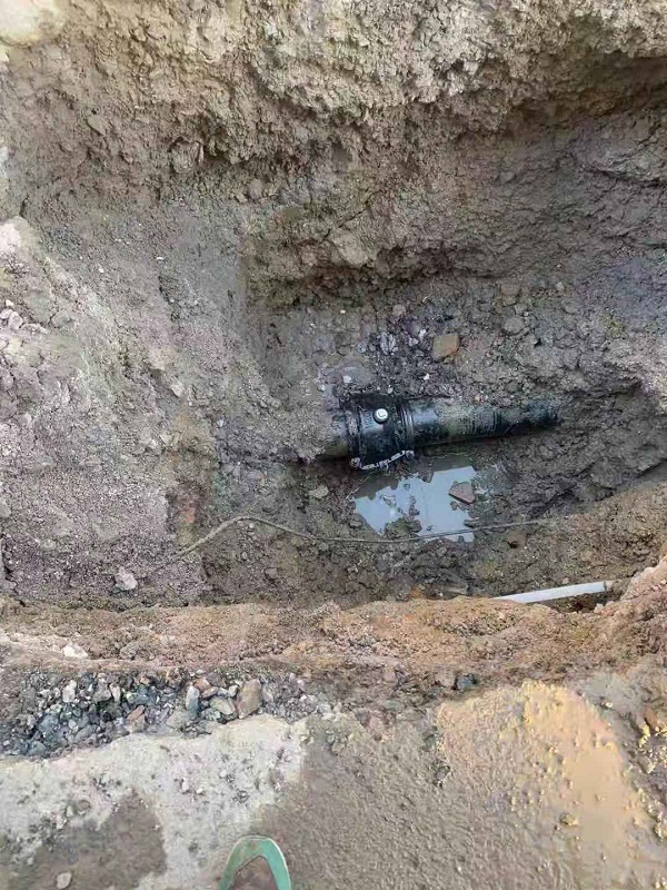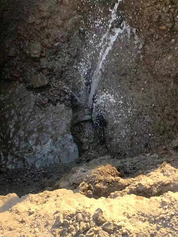 湖南所首先對該區(qū)域內(nèi)各三井進(jìn)行排查,未發(fā)現(xiàn)漏水?,F(xiàn)雖已是寒冬,但大家沒有放棄,在千山公司工程技術(shù)室的配合下繼續(xù)在地區(qū)排查,大家通過閉門測試,仍未查到漏水點(diǎn)。所里立即聯(lián)系安寧公司查漏隊(duì),大家通過分析之前排查的情況,認(rèn)真梳理每個過程,排除各下線漏水的可能,將漏水鎖定到該區(qū)域的DN200主線。查漏隊(duì)通過聽音、排查,最終鎖定漏水點(diǎn)為新湖路2棟東側(cè)DN200主線。12月21日,千山公司搶修隊(duì)第一時間到達(dá)現(xiàn)場進(jìn)行挖掘,當(dāng)挖開地面后,大家發(fā)現(xiàn)是月DN200管線承口開裂,搶修隊(duì)立即對漏水處進(jìn)行修復(fù)。該處漏水日漏失水量240立。