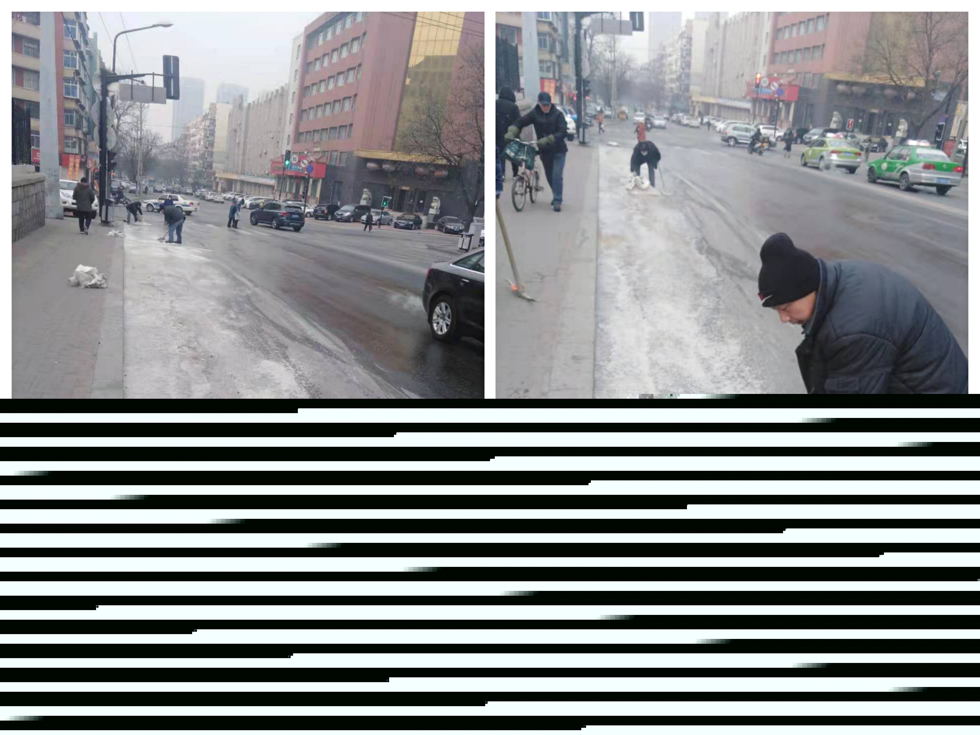 近日,位于鐵東民生路南側(cè)與五道街交叉處,因一檢查井管線堵塞,造成路面出現(xiàn)了長(zhǎng)43米,寬2.7米的結(jié)冰現(xiàn)象。經(jīng)查看,此處管線并不屬于市政排水管理范圍,但考慮到該路段緊鄰烈士山公園,早晚經(jīng)過(guò)此處散步晨練的老年人較多,為保障來(lái)往行人和過(guò)往車輛的出行安全,排水鐵東管修分公司在接到任務(wù)后立即派出搶修人員,第一時(shí)間趕赴現(xiàn)場(chǎng),及時(shí)對(duì)結(jié)冰路面進(jìn)行了清理作業(yè)。