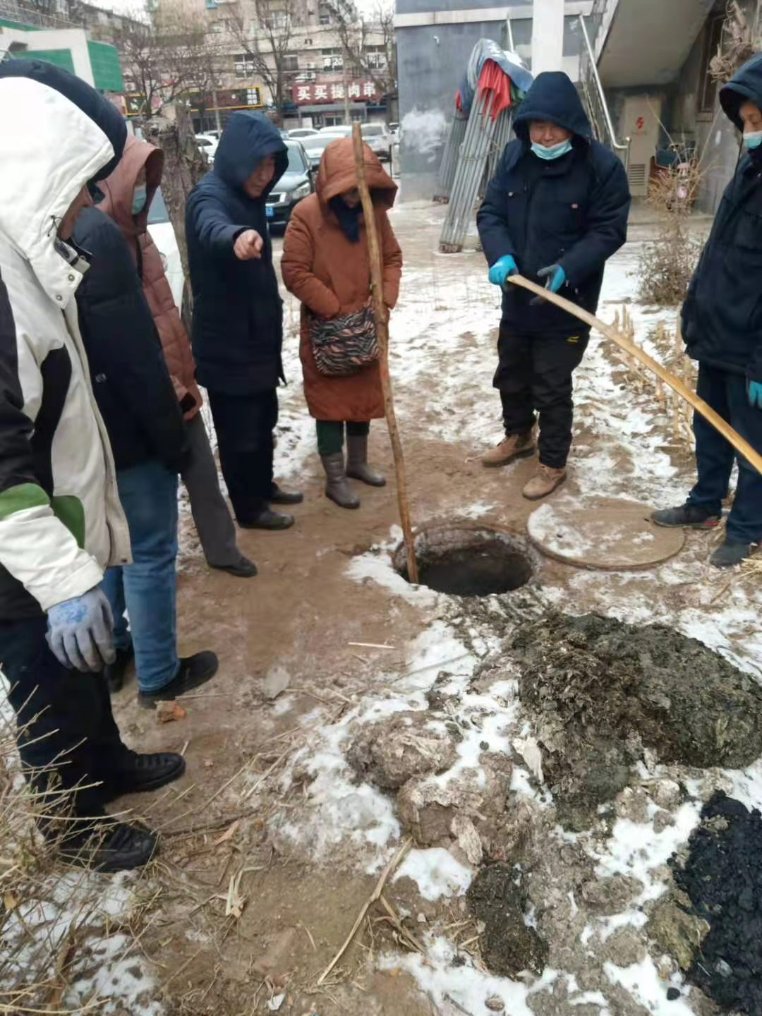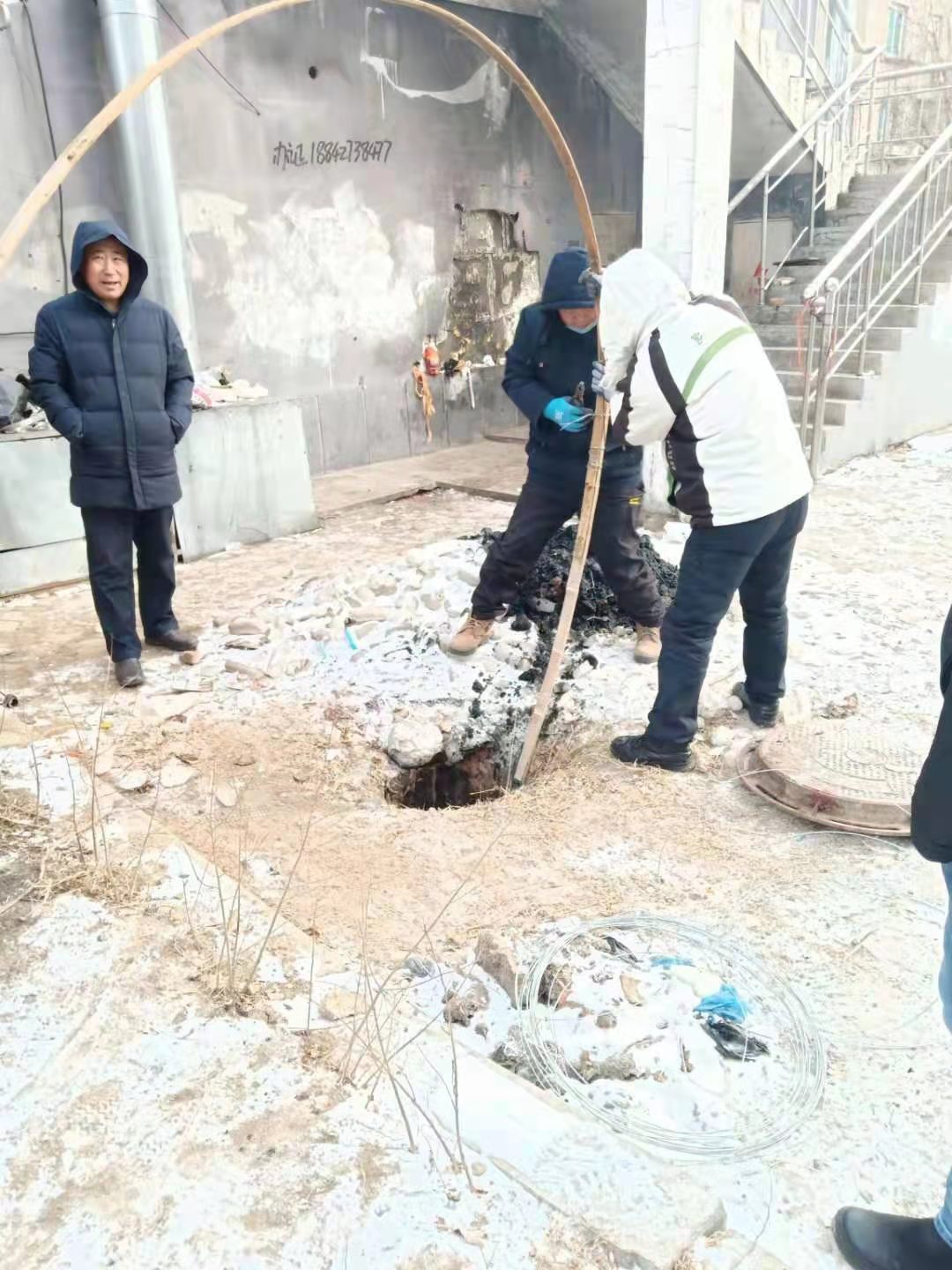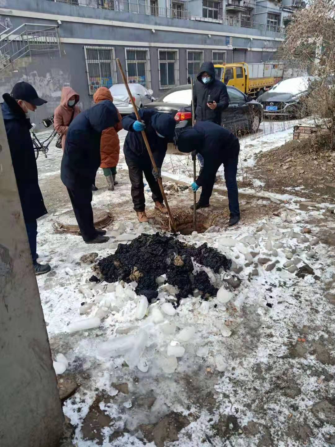 鐵西區(qū)富強(qiáng)街20棟樓屬于棄管樓,排水鐵西管修分公司冬季服務(wù)搶修隊(duì)接到任務(wù)后,立即組織人員趕赴現(xiàn)場(chǎng)勘查,在市城市發(fā)展管理中心的協(xié)調(diào)和幫助下,制定了切實(shí)有效的解決方案。由于當(dāng)天的氣溫零下11℃,污水和污物混合結(jié)成大塊冰坨,給清掏工作帶來很大難度。黨員同志們積極帶頭,冒著嚴(yán)寒,為百姓排憂解難。搶修隊(duì)員們采取人工破冰方式,經(jīng)過三個(gè)多小時(shí)連續(xù)奮戰(zhàn),清掏3座檢查井,疏通50米污水管線,解決了管線堵塞污水外溢難題。