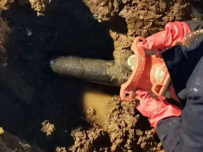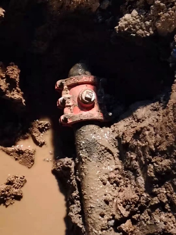 大家在上午排查時(shí),未發(fā)現(xiàn)漏水。就在大家下午研究繼續(xù)排查方案時(shí),有用戶打電話報(bào),湖南街6乙樓前路面有清水。維修班第一時(shí)間到達(dá)現(xiàn)場查看情況,發(fā)現(xiàn)是湖南街6乙南樓頭人行道上趟清水,所里立即聯(lián)系安寧公司查漏隊(duì)進(jìn)行定點(diǎn)。同時(shí)千山公司工程技術(shù)室及搶修隊(duì)也到現(xiàn)場待命,準(zhǔn)備搶修?,F(xiàn)場由于凍層較厚,地面無法聽到漏水聲音。大家只好在漏水處挖掘,當(dāng)挖開后,發(fā)現(xiàn)漏水點(diǎn)不在此處,查漏隊(duì)根據(jù)漏水方向,通過排查,最終鎖定漏水點(diǎn)為馬路西側(cè)。經(jīng)過回填,再次挖掘,終于發(fā)現(xiàn)漏水點(diǎn),為DN100主線斷裂。搶修隊(duì)立即對漏水進(jìn)行修復(fù)。晚上11點(diǎn)多,路面回填完成,搶修結(jié)束。該處漏水日漏失水量150立。
