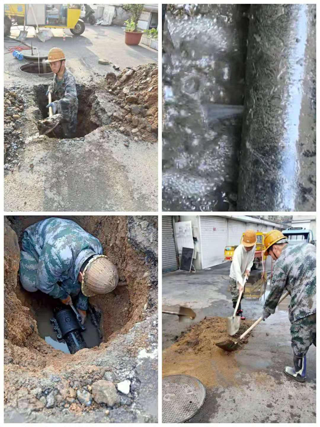 在沒有挖掘機的情況下,維修人員克服天氣的炎熱,輪番上陣開始人工挖掘,大家你一鍬我一鎬,顧不得身上的泥土與汗水,只想盡快找到漏水點。功夫不負有心人,當坑深1.5米左右時,終于發(fā)現(xiàn)漏水點。經再次檢查,確定為DN125鋼管爆裂導致漏水。慶幸的是爆裂口并不大,用哈夫節(jié)即可修復。維修人員在狹小的溝槽里,與地面人員充分協(xié)調合作,下到溝槽里輪流作業(yè),不敢有絲毫懈怠。經過3個多小時的奮力搶修,于晚7時左右DN125哈夫節(jié)安裝完畢,恢復供水;搶修人員開始回填工作坑,設置警示標志并清理現(xiàn)場,搶修工作順利結束。此次搶修的快速及時,使無效水量每小時減少4m3左右,為集團降低損失。