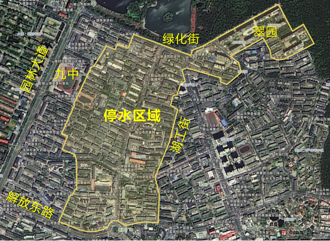第九中學(xué)以東、綠化街以南、湖工街以西、解放東路以北區(qū)域以及翠湖豪庭、申江嘉寶翠園小區(qū)。