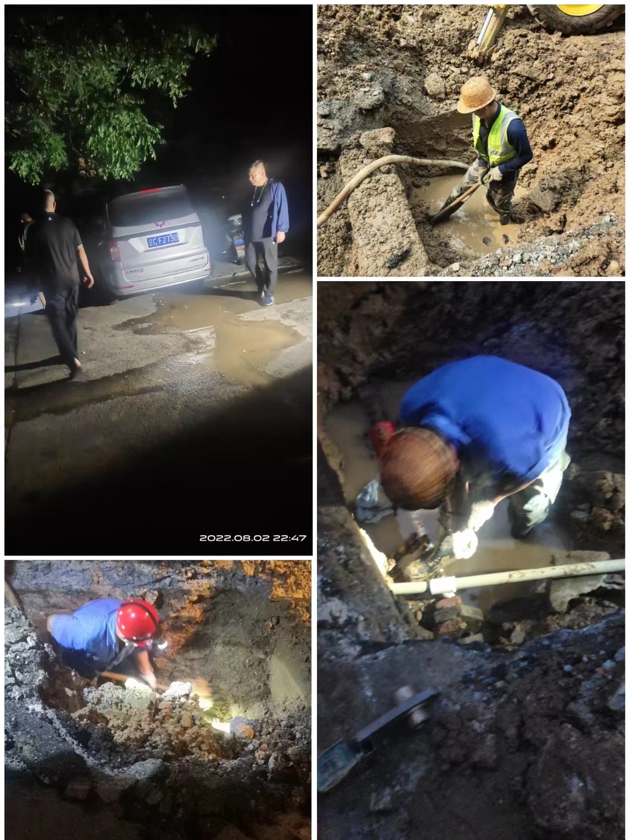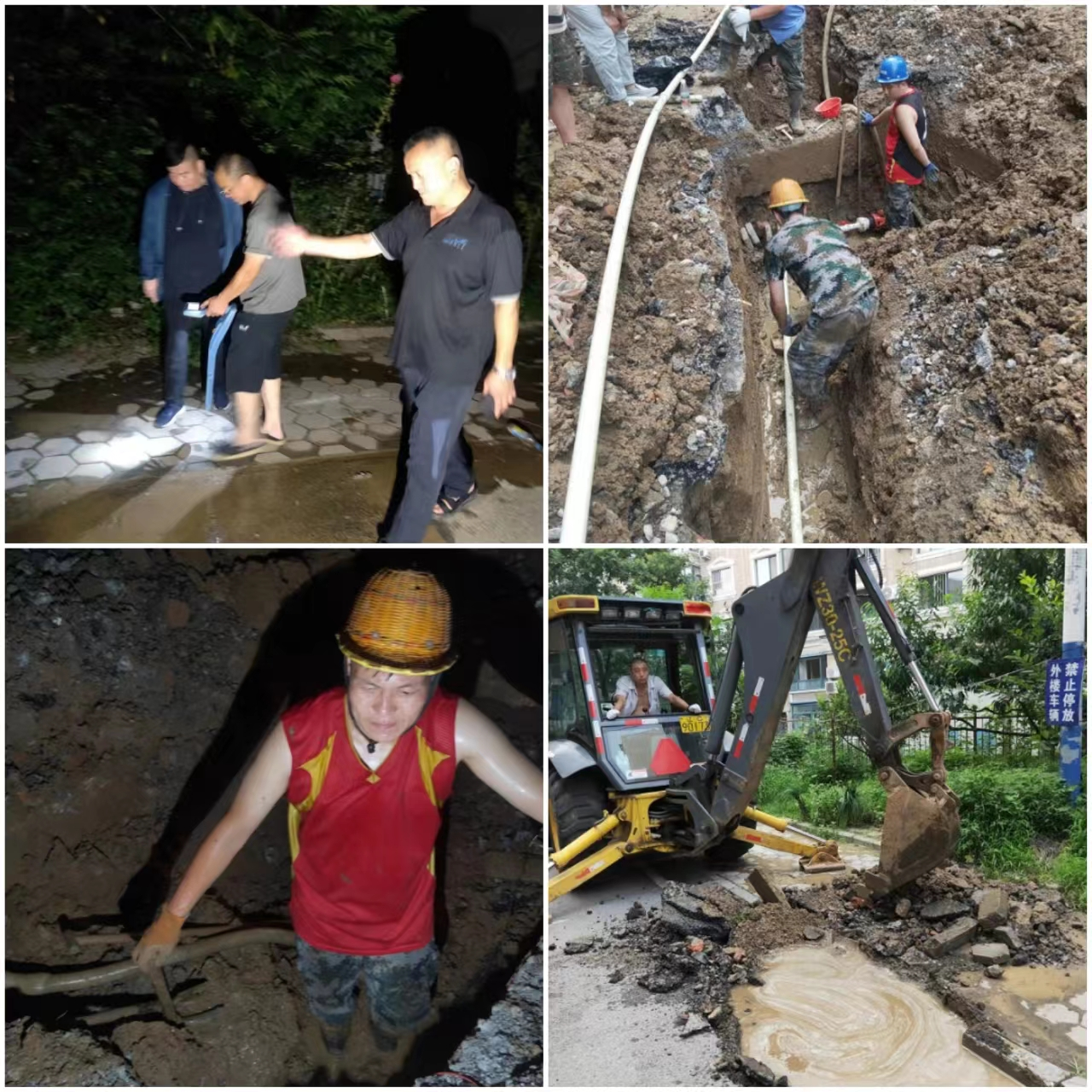 第二天一早,大家來(lái)到現(xiàn)場(chǎng),挖掘后發(fā)現(xiàn)該處管線全部老化嚴(yán)重,多處出現(xiàn)漏水點(diǎn),千山公司決定由于湖南所和搶修隊(duì)共同將此處老化管線大修更換。經(jīng)過(guò)一天的努力,終于在晚上8點(diǎn)恢復(fù)供水。兩天的奮戰(zhàn)得到了周圍百姓的高度贊揚(yáng)!