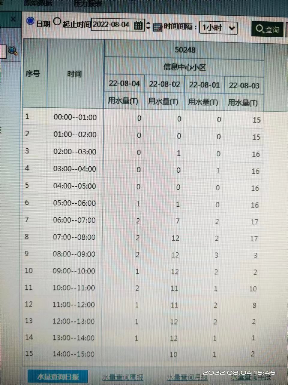 湖南所按照集團(tuán)精細(xì)化管理擂臺(tái)賽和千山公司降差工作要求,時(shí)刻關(guān)注轄區(qū)內(nèi)水量及夜流變化,8月2日中午,維修班發(fā)現(xiàn)信息中心區(qū)域新加裝的DN100考核表瞬時(shí)流量突增10立,所里立即安排非民用抄收員排查非居民用戶用水情況,同時(shí)維修班到現(xiàn)場(chǎng)排查漏水情況。