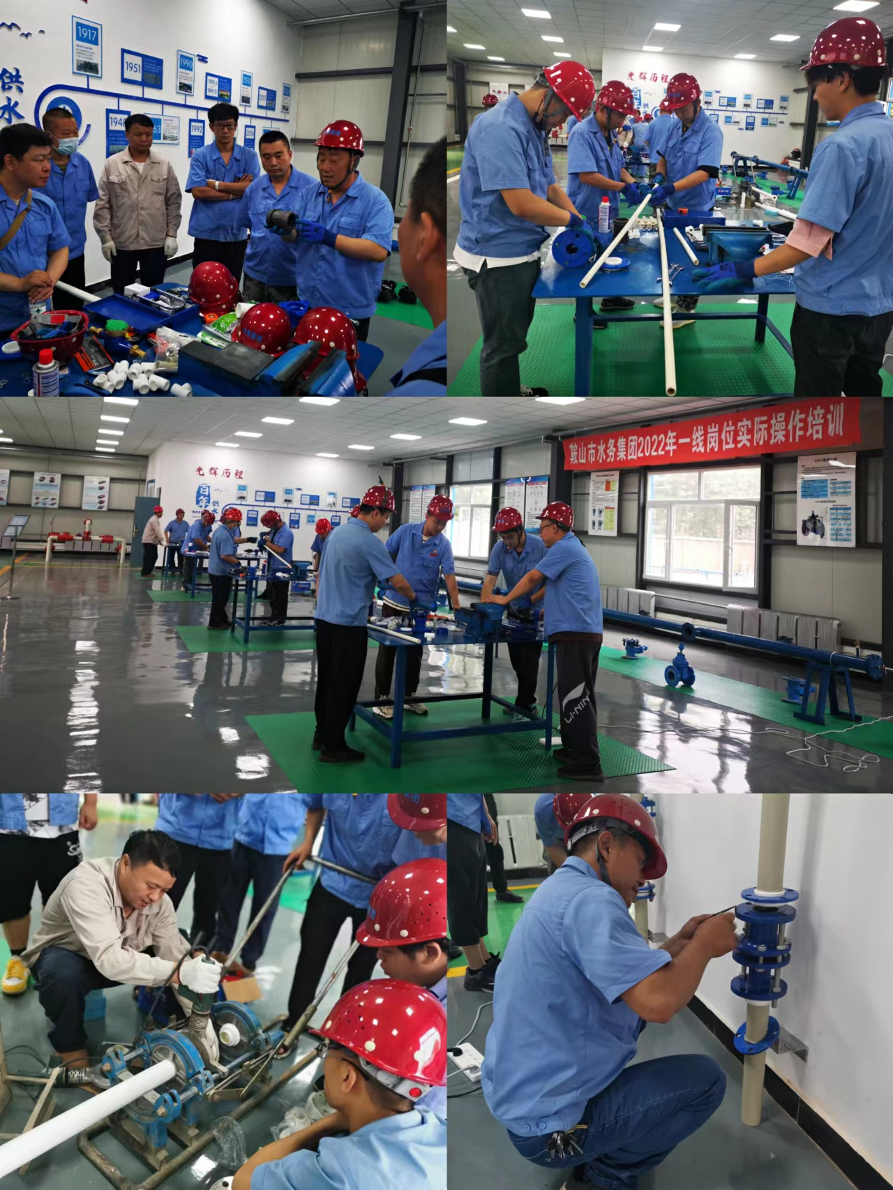 水務(wù)集團(tuán)內(nèi)訓(xùn)實(shí)操基地主要承擔(dān)管道維修、營業(yè)抄收、查漏崗位理論與實(shí)際操作培訓(xùn),是在對(duì)標(biāo)國內(nèi)水務(wù)先進(jìn)單位和征求集團(tuán)各單位、各部門意見基礎(chǔ)上建設(shè)的,是以“解決問題、提升技能”為出發(fā)點(diǎn)和落腳點(diǎn),是拓展培訓(xùn)新途徑、提升員工技能水平的新平臺(tái)。內(nèi)訓(xùn)實(shí)操基地于2022年初正式投運(yùn),占地面積約1000平方米,主要分為管件展示區(qū)、安裝實(shí)操區(qū)、管道井實(shí)操區(qū)、砌筑實(shí)操區(qū)、抄見實(shí)操區(qū)、查漏實(shí)操區(qū)6個(gè)實(shí)操場地,及1個(gè)可容納50余人的多媒體培訓(xùn)教室。本次營銷系統(tǒng)一線崗位(地區(qū)維修工崗位)全員培訓(xùn)重點(diǎn)依托內(nèi)訓(xùn)實(shí)操基地,開展包括維修崗位管理制度、管網(wǎng)基礎(chǔ)知識(shí)、供水管件連接、管網(wǎng)檢漏、室內(nèi)室外漏點(diǎn)維修等12門理論培訓(xùn)和室內(nèi)管道安裝與維修、打口操作與漏水搶修、管道打壓操作與閥門安裝、井室砌筑規(guī)范操作4門實(shí)操培訓(xùn),由營銷管理部、管網(wǎng)工程部、水務(wù)工程有限公司精通業(yè)務(wù)的領(lǐng)導(dǎo)及技術(shù)骨干擔(dān)任講師。培訓(xùn)不局限于理論授課和現(xiàn)場實(shí)際操作,對(duì)重點(diǎn)實(shí)操項(xiàng)目錄制標(biāo)準(zhǔn)操作視頻下發(fā),便于在工作中隨時(shí)觀看隨時(shí)學(xué)習(xí),年末還將組織理論和實(shí)操考試檢驗(yàn)培訓(xùn)效果。