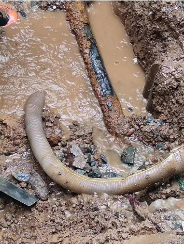 8月初,西長(zhǎng)甸所通過(guò)查看管網(wǎng)水量監(jiān)控系統(tǒng),發(fā)現(xiàn)山南與鋼鋒300區(qū)域水量突增3立方米/時(shí),隨即在該區(qū)域展開(kāi)攻關(guān),通過(guò)改變供水方式查找漏水,鎖定漏水位置在博格園區(qū)域,經(jīng)過(guò)閥門(mén)聽(tīng)音,發(fā)現(xiàn)樓層門(mén)存在異響,逐一排查下水井,在工人街48棟下水井處發(fā)現(xiàn)有返清水現(xiàn)象。由于該樓一樓全是車(chē)庫(kù),無(wú)人居住,西長(zhǎng)甸所經(jīng)過(guò)幾次張貼告示、多次聯(lián)系物業(yè)和用戶(hù),才進(jìn)到院內(nèi),經(jīng)過(guò)地面聽(tīng)音、集團(tuán)檢漏隊(duì)精準(zhǔn)定位,鎖定漏水位置位于19號(hào)車(chē)庫(kù)門(mén)前進(jìn)戶(hù)管線(xiàn)處,在鐵東公司搶修隊(duì)的大力支持下,截止8月15日,成功修復(fù)漏水,日降無(wú)效水量144立方米。
