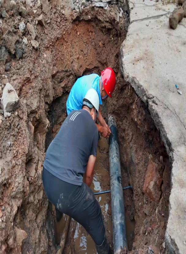 9月14日早6時,齊大山地區(qū)櫻一街37棟樓前DN150 PE供水管線突發(fā)漏水,水量驟增300立/時,水勢急且影響路面通行,正巧齊大山泵站同時出現(xiàn)變頻器故障,供水十分困難。齊大山班立即迅速應對,組織人員采取止水、溝通協(xié)調、查修漏水等應對措施,最終在工程公司及立山公司工程技術室的大力幫助下,于當天上午11時將長達1米的裂口修復完畢,修復后日降低無效水量7200立/日。