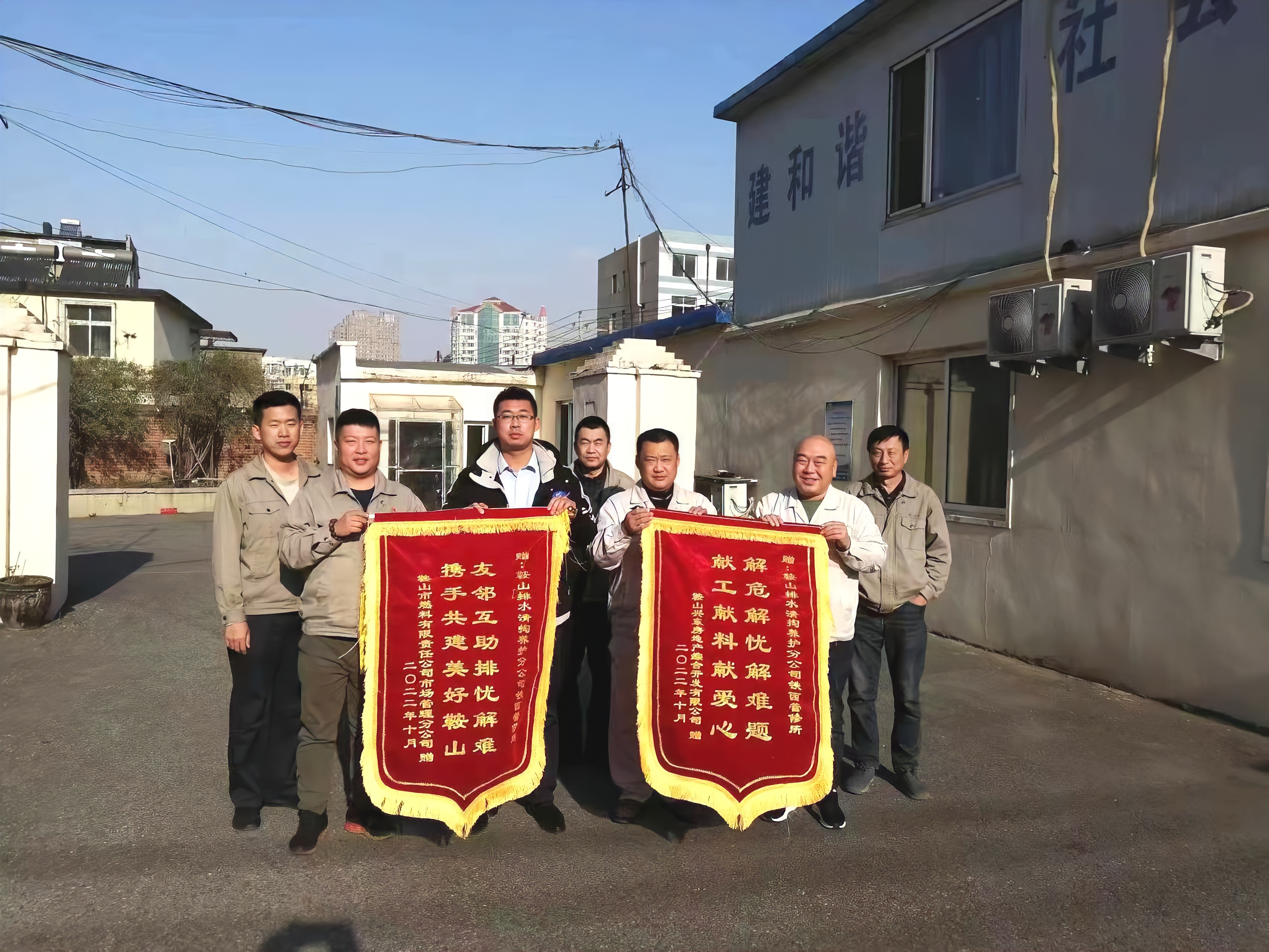 近日,興東房地產(chǎn)綜合開發(fā)有限公司和鞍山燃料公司市場管理分公司工作人員分別將寫有“解危解憂解難題,獻工獻料獻愛心”和“友鄰互助排憂解難,攜手共建美好鞍山”的兩面錦旗送到了水務(wù)集團,對水務(wù)集團傾情相助表示衷心感謝。