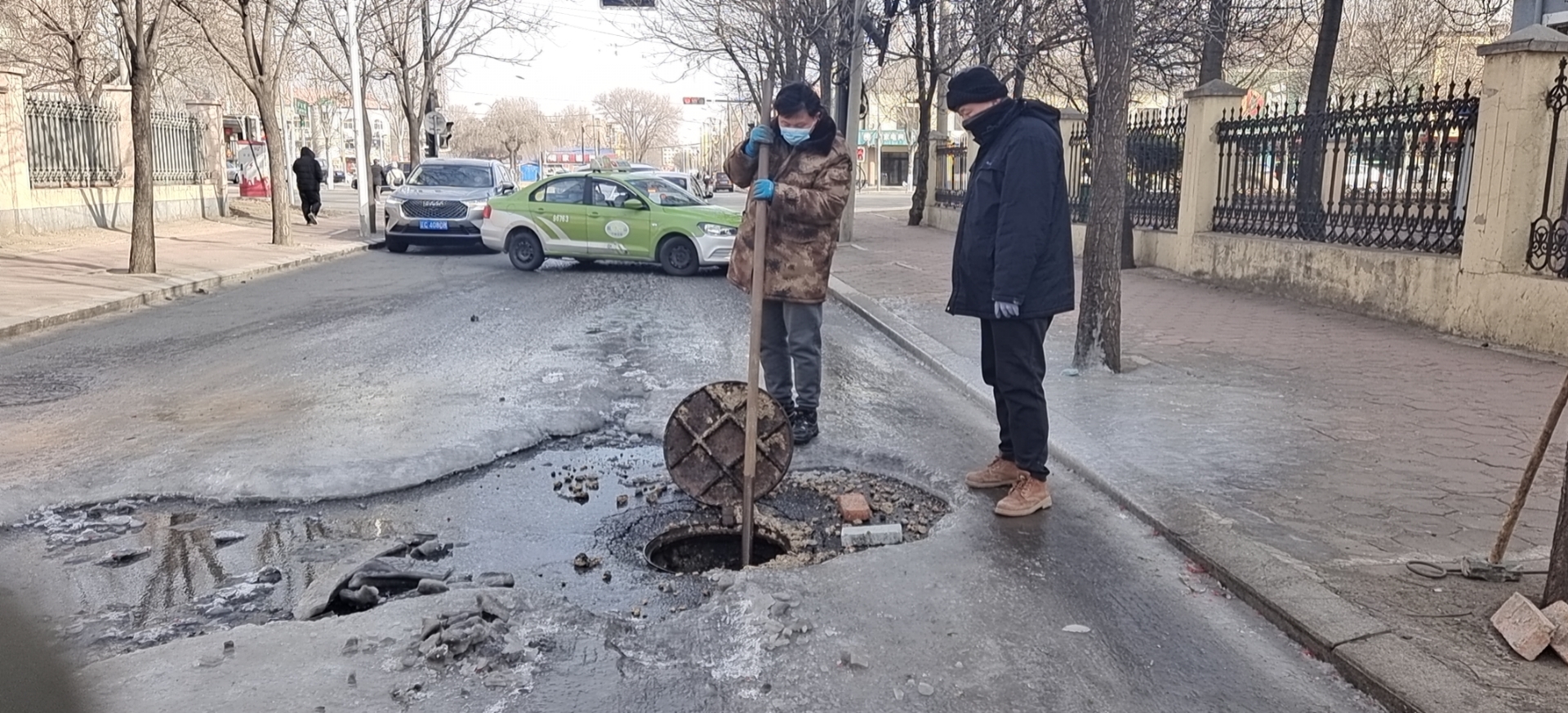 1月21日,農(nóng)歷大年三十,站南街建設(shè)大道往南,一檢查井出現(xiàn)污水外溢情況。清掏養(yǎng)護(hù)維修分公司立山管修所接到報(bào)票后,迅速組織冬季服務(wù)搶修人員調(diào)集車輛奔赴現(xiàn)場(chǎng),經(jīng)現(xiàn)場(chǎng)勘查,由于附近飯店違規(guī)接點(diǎn),長(zhǎng)期傾倒油污垃圾,導(dǎo)致管線堵塞無(wú)法正常排水。為了不影響來(lái)往車輛正常通行,搶修人員決定采用人工疏通方式進(jìn)行清掏作業(yè)。大家輪番上陣,克服冬季天氣寒冷,用竹批子深入井內(nèi)反復(fù)拉拽對(duì)堵塞管線進(jìn)行疏通,經(jīng)過(guò)搶修人員1個(gè)小時(shí)的共同努力,成功疏通堵塞管道,保障了節(jié)日期間轄區(qū)居民安全出行。