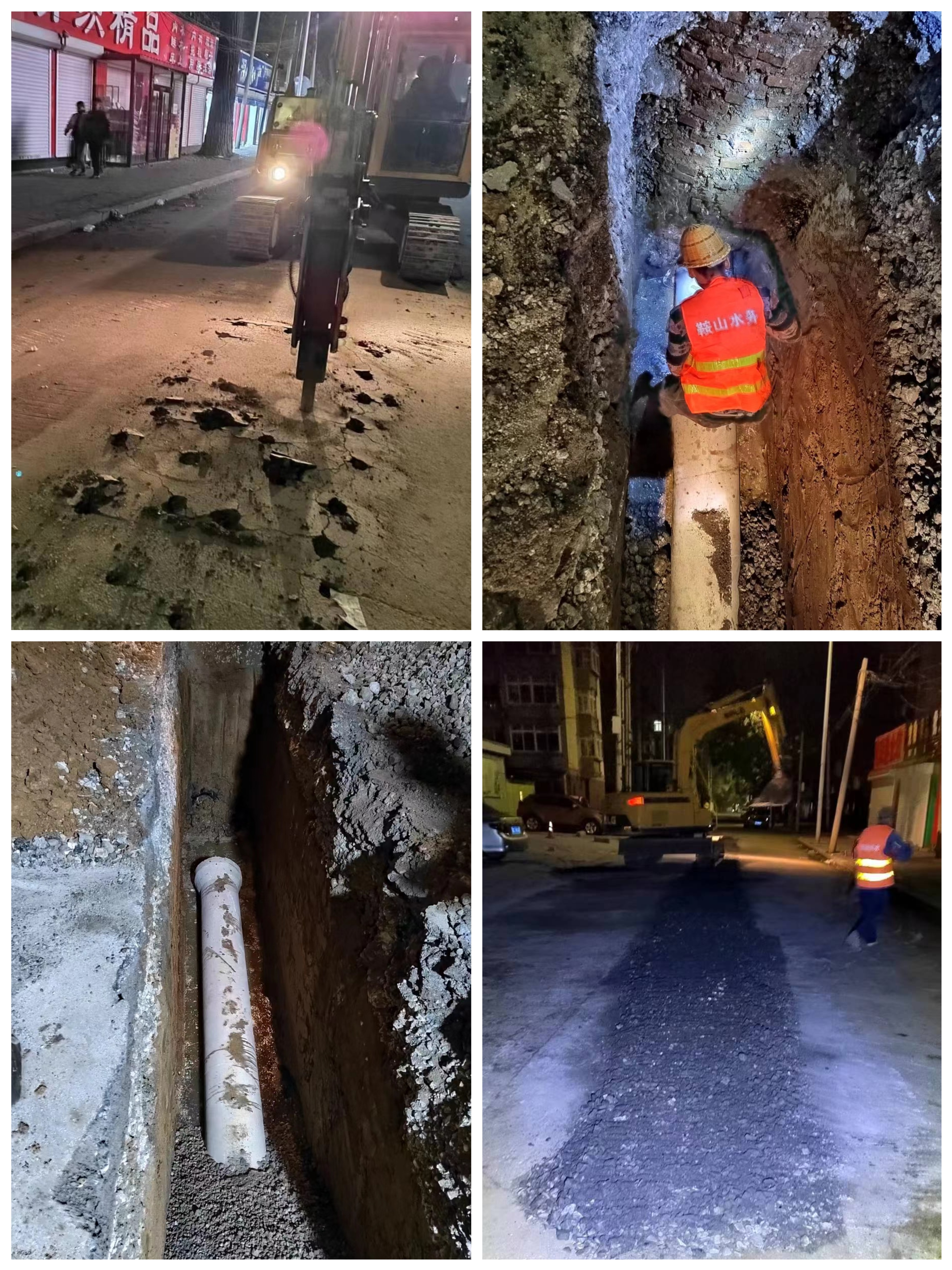 由于該路段緊臨市場,白天來往人流較多,為了盡可能減小對居民出行的影響,搶修人員只能利用夜間進行施工。排水公司迅速組織施工人員9人,出動挖掘機、鏟車等機械設(shè)備,對此處管線進行翻建。搶修人員克服困難,加班加點,經(jīng)過10日、11日兩個夜間的緊張施工,翻建排水管線32米,圓滿完成了搶修任務(wù),從根本上解決了該處污水外溢問題,還周邊居民一個干凈整潔的生活環(huán)境。