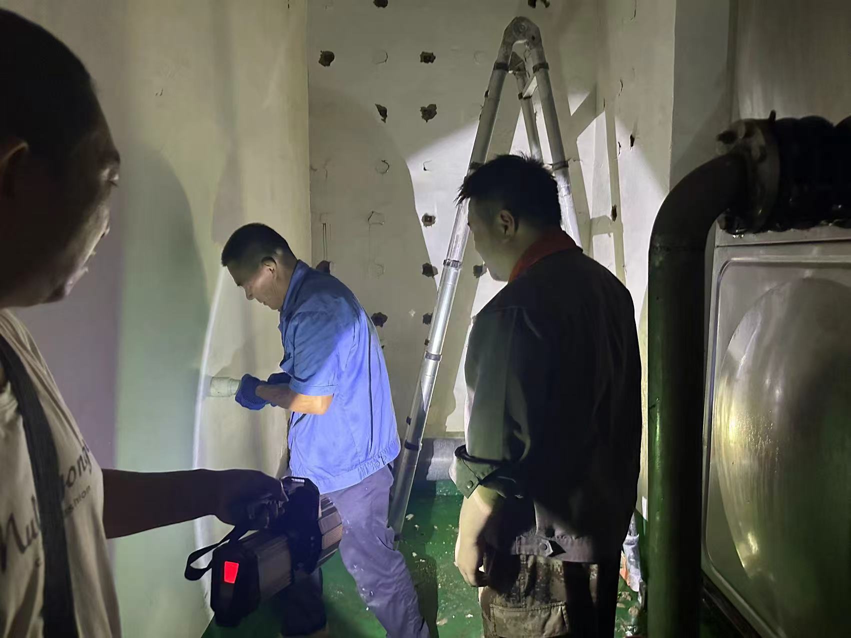 8月正值盛夏時節(jié),每天最高溫度超過30℃,水務集團始終堅持解民憂、排民患,巡視員不顧天氣炎熱,在巡視頤嘉居泵站時發(fā)現(xiàn)地面有積水,查看管路發(fā)現(xiàn)高區(qū)出水管由于銹蝕出現(xiàn)焊口漏水,又逢周日是居民用水高峰期,如不及時搶修可能造成爆管的危險。巡視員爭分奪秒立即將情況逐級上報到水務集團。
