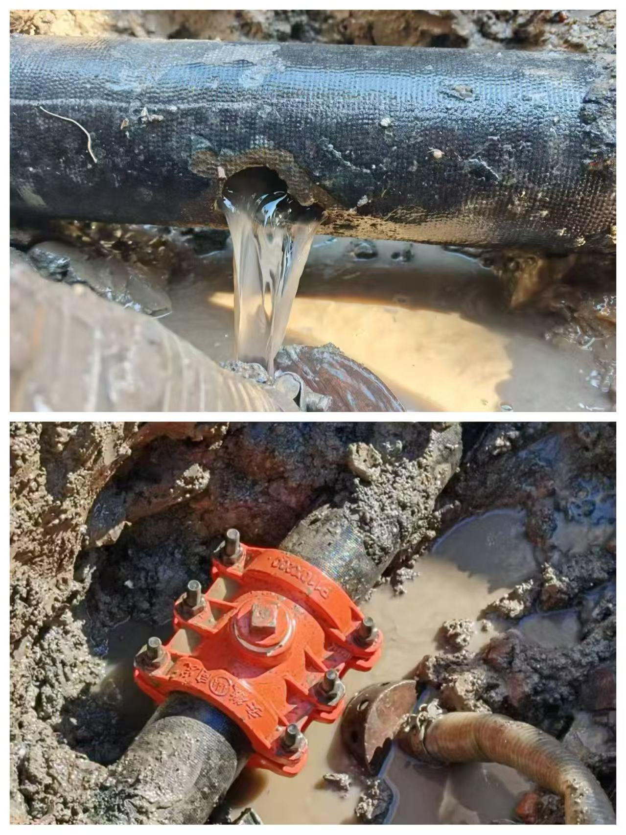 舊堡管修所積極響應(yīng)分公司部署,創(chuàng)新采用 “冬季保供與查漏降差雙線并進(jìn)” 策略,統(tǒng)籌推進(jìn)安全生產(chǎn)與效益提升。在對泉興回遷小區(qū)開展供水?dāng)?shù)據(jù)監(jiān)測時,工作人員敏銳發(fā)現(xiàn)區(qū)域水量存在異常波動,隨即對管網(wǎng)進(jìn)行全面排查。經(jīng)多日追蹤,鎖定小區(qū)西側(cè)沛芝堂藥房門前 DN100mm 管線存在滲漏隱患。鐵東公司工程技術(shù)室迅速介入,技術(shù)團(tuán)隊運(yùn)用專業(yè)測流設(shè)備、壓力數(shù)據(jù)分析等手段,經(jīng)多輪現(xiàn)場勘查與精準(zhǔn)測算,成功定位管線腐蝕漏點(diǎn)。分公司搶修隊接到指令后,立即啟動應(yīng)急響應(yīng)機(jī)制,調(diào)配專業(yè)設(shè)備與人員趕赴現(xiàn)場。面對嚴(yán)寒天氣與地下管線復(fù)雜的作業(yè)環(huán)境,搶修人員克服重重困難,歷時三個多小時連續(xù)奮戰(zhàn),完成 DN100管線中壓熟鐵管線腐蝕部位的修復(fù)工作。經(jīng)測算,此次搶修成功降低日無效供水量 260 立方米,有效提升了區(qū)域供水效率。