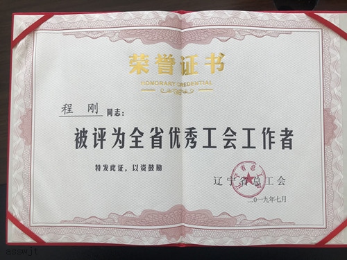 程剛同志被評(píng)為“全省優(yōu)秀工會(huì)工作者”