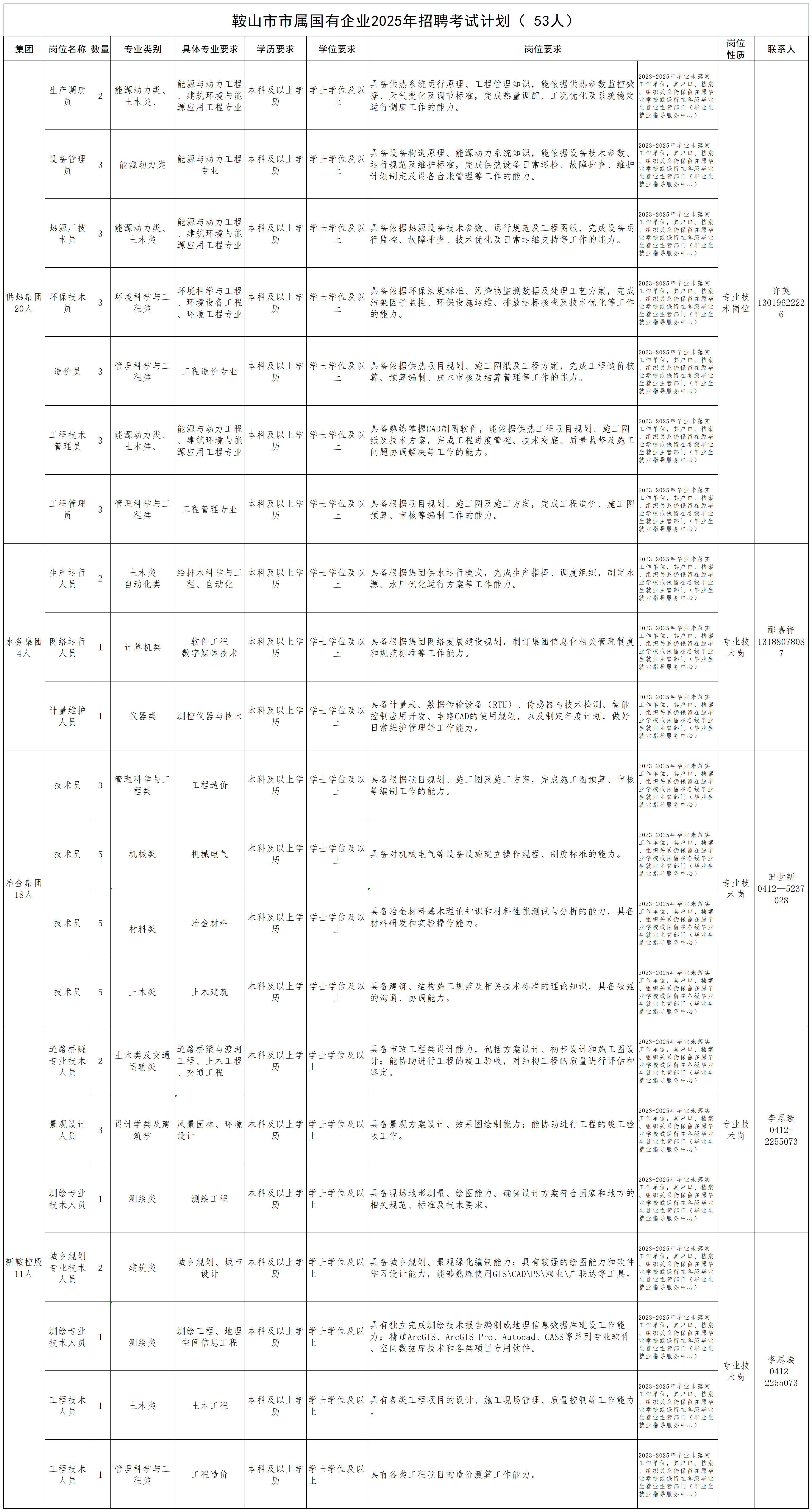 本次面向2025屆高校畢業(yè)生公開招聘53人,根據(jù)以上4戶企業(yè)及其所屬各級子公司的工作所需設(shè)置崗位。具體崗位及要求詳見附件。