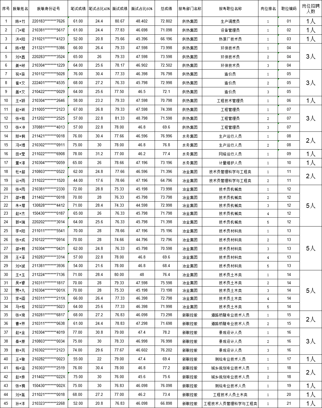附件:鞍山國(guó)企擬聘人員名單