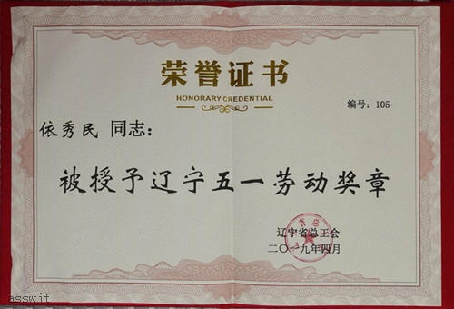 依秀民同志被授予“遼寧五一勞動(dòng)獎(jiǎng)?wù)隆?/h1>